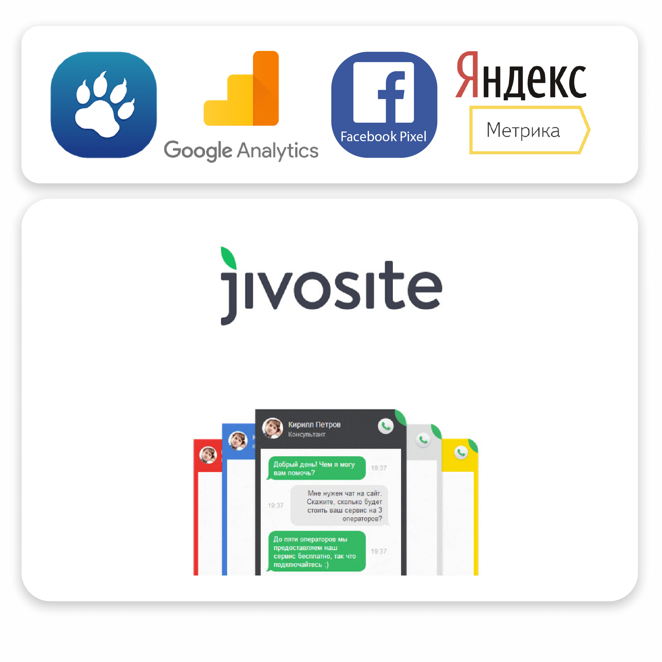 Интегрированные инструменты аналитики Google Analytics, Яндекс.Метрика, пиксель Facebook - эти инструменты помогут узнать: количество посетителей в день, сколько времени клиент провел на сайте, с какого устройства он посетил ваш сайт и даже просмотреть видеозапись его действий на сайте!
